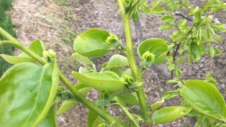 一つの枝に5~7つの蕾が付きますが「形」「大きさ」「角度」「着果位置」から判断して1つに絞り、残りはすべて落としてしまいます。細い枝や短い枝は全て取り除いてしまうこともあります。