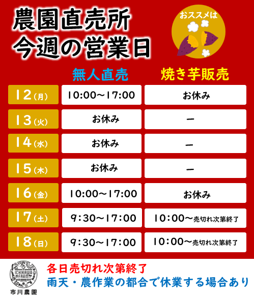 ⚠ 天候・農作業の都合で変更・休業する場合があります